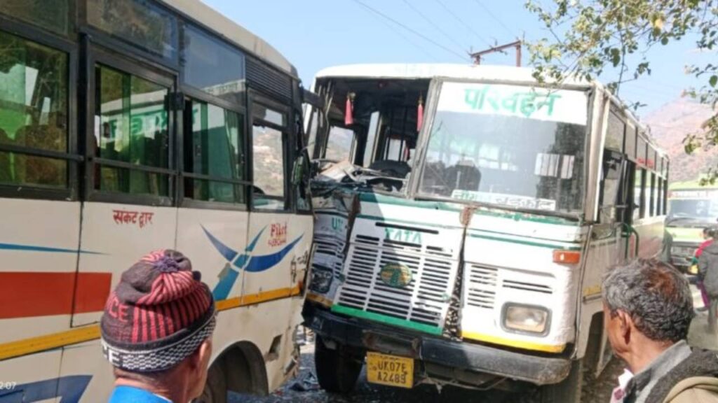 जानकारी के मुताबिक रोडवेज संख्या UK07PA 2489 बड़कोट से देहरादून आ रही थी, जबकि प्राइवेट बस विकास नगर से बड़कोट जा रही थी। बड़कोट के करीब बर्नी गाड़ के पास दोनों बसों की आमने सामने की भिड़ंत हो गई। बताया जा रहा है कि प्राइवेट बस के चालक बबली निवासी डाकपत्थर कोतवाली विकास नगर को गंभीर चोट आने पर नौगांव चिकित्सालय भेजा गया है। जबकि बस में सवार बिजी पुत्र हुकम सिंह निवासी चपराटी तहसील पुरोला व गीता चौधरी पुत्री मन बहादुर बड़कोट जिला उत्तरकाशी को 108 के माध्यम से उपचार हेतु नौगांव चिकित्सालय भेजा गया है।