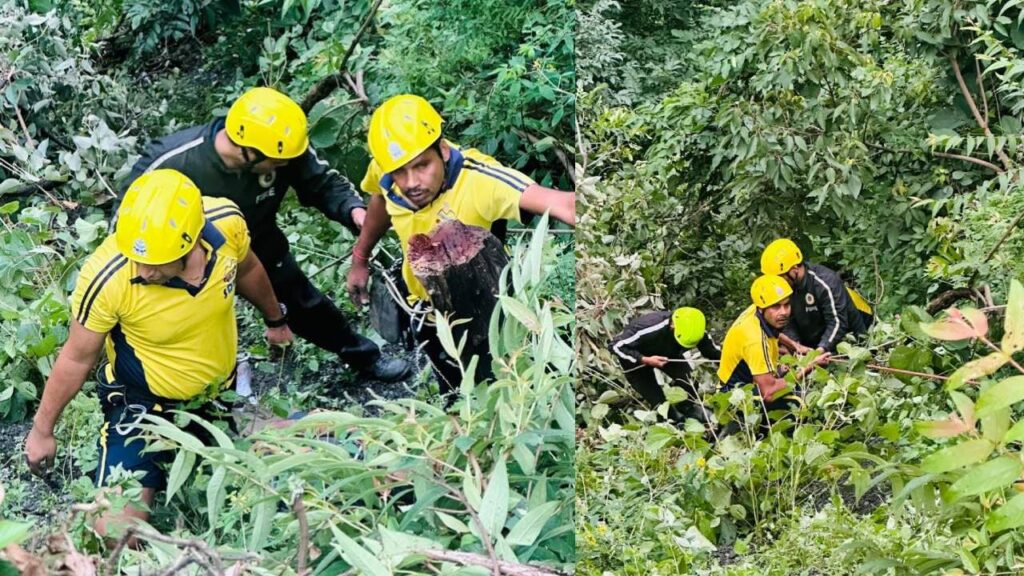 मसूरी से लौट रही कार मैगी प्वाइंट के पास खाई में गिरी, 2 लोगों की मौत, 4 घायल