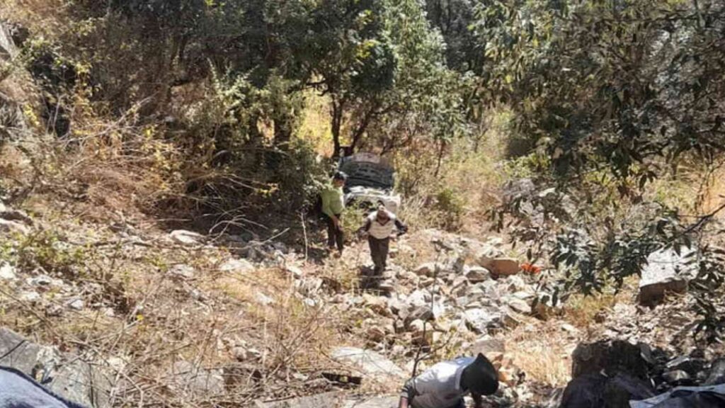 नैनीडांडा: खाई में गिरी दिल्ली से गांव आए लोगों की कार, दो की मौत एक घायल