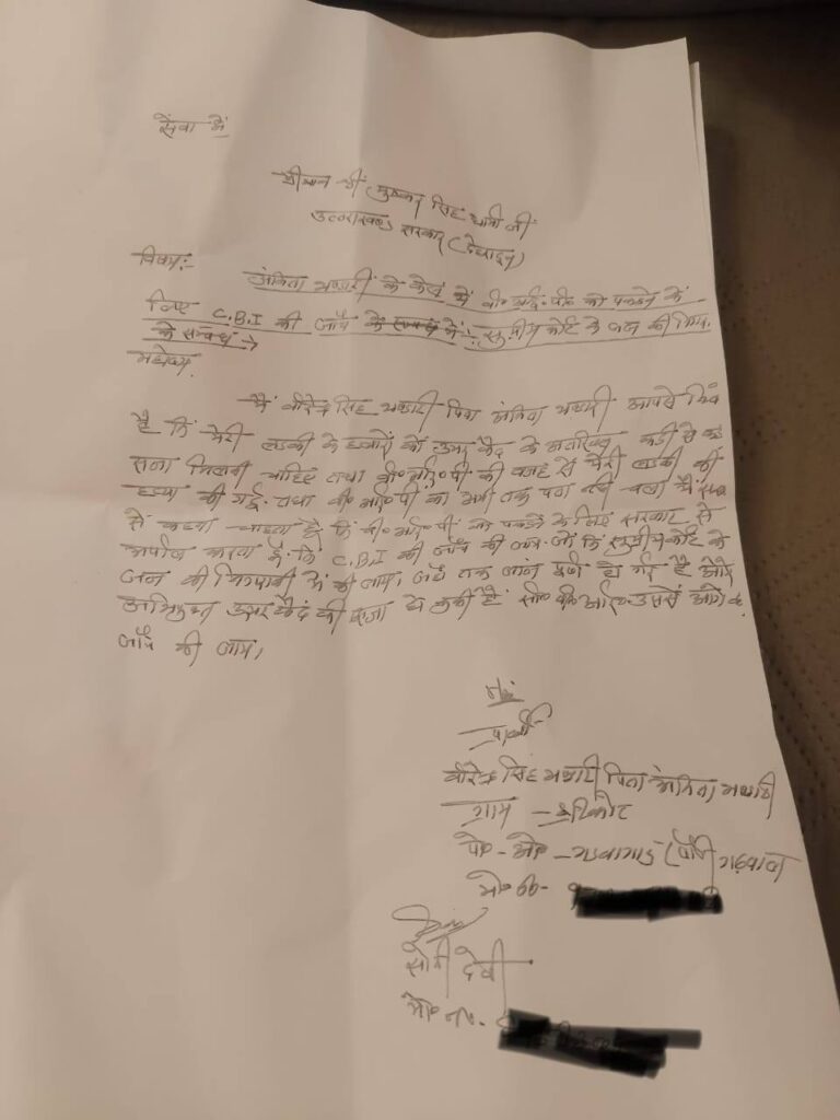 सीएम से मुलाकात के बाद अंकिता भंडारी के माता-पिता ने जोर देकर कहा कि हमारी बेटी सबकी बेटी है, उसे न्याय मिलना ही चाहिए। और न्याय तब तक नहीं मिलेगा जब तक इस केस के वीआईपी का पता नहीं लगेगा। इसलिए वीआईपी की पहचान के लिए सुप्रीम कोर्ट के जज की निगरानी में सीबीआई जांच की जानी चाहिए। अंकिता भंडारी के माता पिता नें कहा कि उनकी बेटी तो दरिंदो का शिकार हो गईं लेकिन उत्तराखंड की किसी भी बेटी के साथ ऐसा न हो इसलिए वह इस लड़ाई कों लड़ रहें हैं। अंकिता के माता पिता ने मुख्यमंत्री ने काम एक पत्र भी जारी किया है।