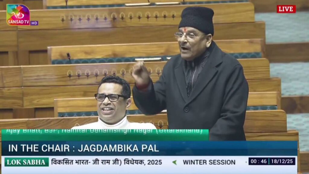 रैबार डेस्क: संसद के शीतकालीन सत्र में मनरेगा योजना का नाम बदलने को लेकर सियासी घमासान तेज है। मनरेगा की जगह नई नीति लाने और योजना के नाम में बदलाव किए जाने को लेकर विपक्ष, खासकर कांग्रेस, लगातार हमलावर है। कांग्रेस का आरोप है कि नई योजना से महात्मा गांधी का नाम हटाया जा रहा है। इस मुद्दे पर नैनीताल–उधमसिंह नगर लोकसभा सीट से भाजपा सांसद अजय भट्ट ने भी जोरदार तरीके से अपनी बात रखी। उलेकिन इस बीच कही गई उनकी बात सोशल मीडिया पर वायरल हो गई। जिसमें वो कहते हैं कि घर की सारी परेशानी दूर करने के लिए राम नाम जपिए।