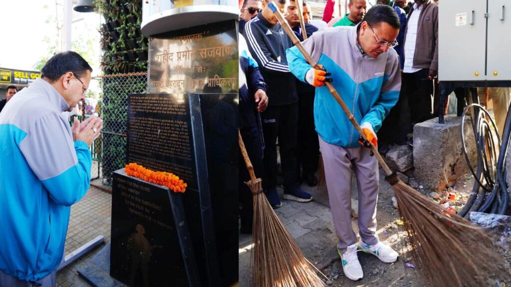 स्वेच्छा से स्वच्छता कार्यक्रम में शामिल हुए सीएम धामी, झाड़ू लगाकर दिया स्वच्छता का संदेश