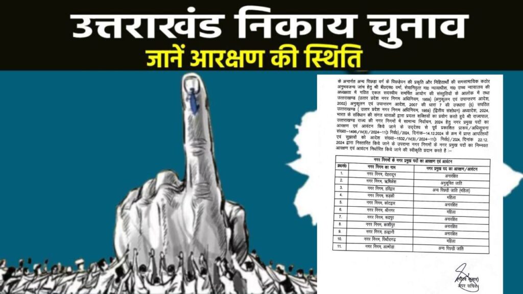 रैबार डेस्क: उत्तराखंड नगर निकाय चुनावों के लिए आरक्षण की प्रक्रिया में शासन ने महत्वपूर्ण कदम उठाए हैं। सरकार ने नगर निगम, नगर पालिका और नगर पंचायतों के आरक्षण सूची में आपत्तियों के आधार पर बदलाव करते हुए आरक्षण की नई सूची जारी की है। आपत्तियां दर्ज होने के बाद, उनकी सुनववाई के बाद शासन ने आरक्षण की अंतिम स्थिति स्पष्ट की है।
