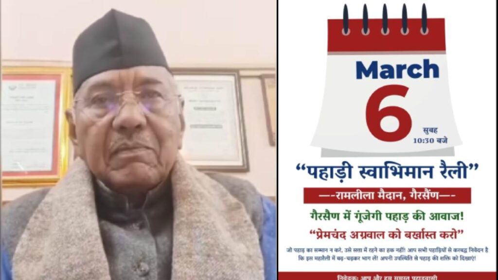 बता दें कि 21 फरवरी को बजट सत्र के दौरान मंत्री प्रेमचंद अग्रवाल ने पहाड़ी समाज के खिलाफ अभद्र टिप्पणी की थी जिसके बाद प्रदेशभर में उनका विरोध हो रहा है। इसी बीच गैरसैंण में 6 मार्च को पहाड़ी स्वाभिमान रैली का आयोजन किया जा रहा है। रैली 6 मार्च को रामलीला मैदान में आयोजित की जाएगी