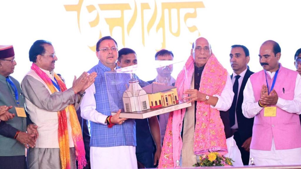 रक्षा मंत्री ने महिला सशक्तिकरण, सैनिक कल्याण, आर्थिक उन्नति, आधारभूत सुविधाओं सहित सभी क्षेत्रों में शानदार प्रदर्शन के लिए, मुख्यमंत्री पुष्कर सिंह धामी की जमकर तारीफ की। भाजपा के वरिष्ठ नेता राजनाथ सिंह ने कहा कि राज्य सरकार ने जहां एक और यूसीसी लागू कर महिला सशक्तिकरण का उदाहरण प्रस्तुत किया , वहीं अवैध घुसपैठियों के खिलाफ कार्रवाई कर उत्तराखंड का स्वरूप बचाने का प्रयास किया है। राजनाथ सिंह ने सख्त नकल विरोधी कानून के लिए भी मुख्यमंत्री धामी की तारीफ करते हुए, कहा कि इसके दूरगामी परिणाम सामने आए।