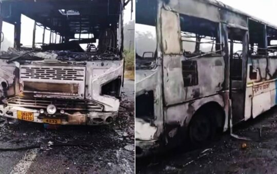 चलती रोड़वेज में लगी आग, बस जलकर हुई खाक, 15 यात्रियों को सुरक्षित निकाला गया