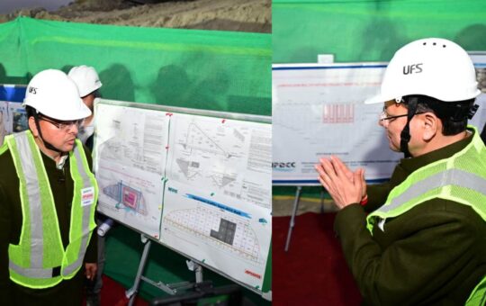 cm dhami inspects construction work of jamranu multipurpise dam and orders to complete work in given deadline with top quality